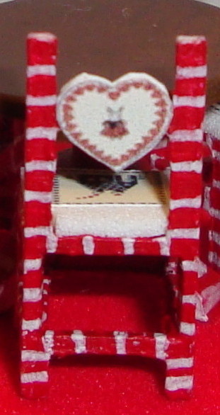 - paint solid red. Then using a 10/0 liner or smaller brush I painted lines on the chairs.