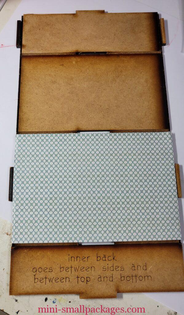 Before putting the interior box together, it is a good idea to add the wallpaper. The box has groves already for the lighting on either side. I’m going to be using the right side only because my wires are really thin.