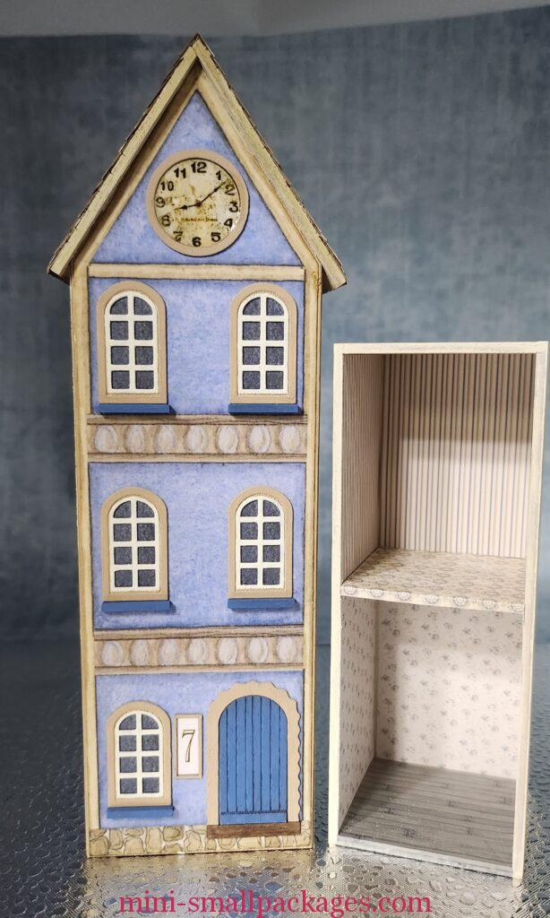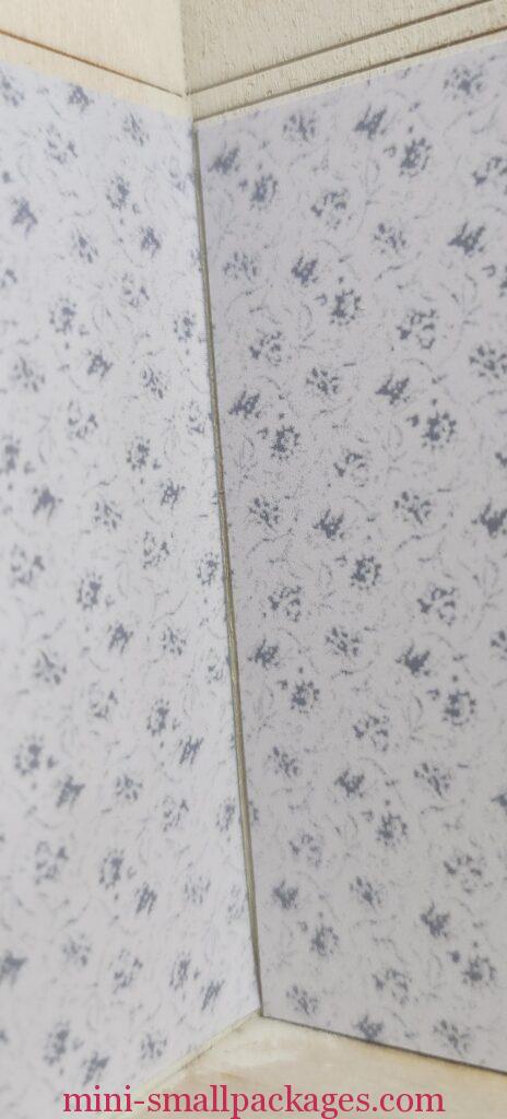Due to life happening, it was several weeks before I got back to the kit. I mention it because apparently I threw away a piece of wallpaper needed above the door. It is noted to use it in the instructions. If you get to this step and are like me and have lost this piece, I recommend painting to match the paper. I discovered my mistake too late after I had glued the piece of wood in place painted butter cream. I would prefer a grey blue color instead. Being at the top under the ceiling it is less likely to be noticed.