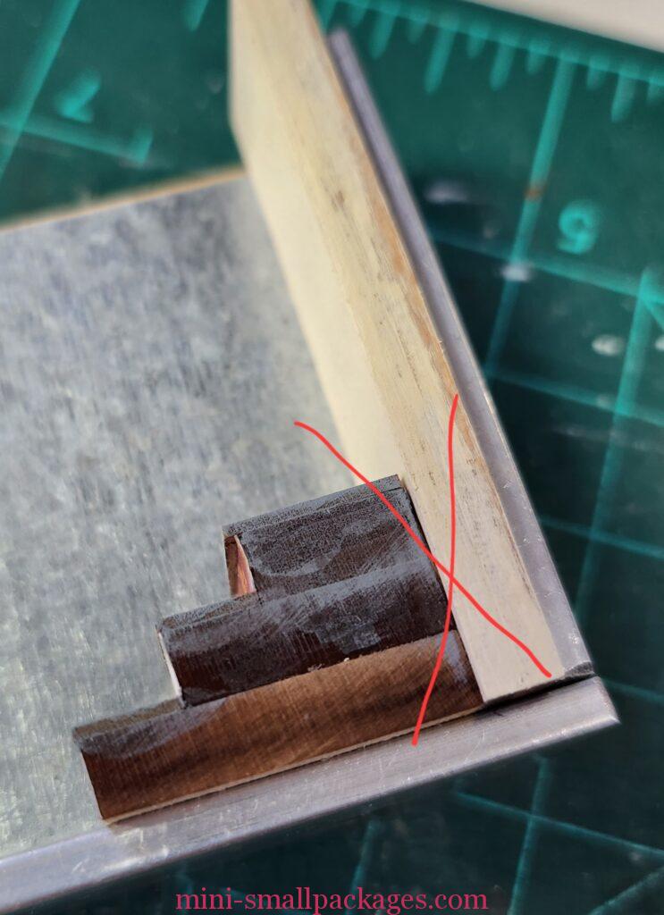 The steps assembly do not get glued directly to the bottom of the door block. Instead the back door wall is glued to the ceiling and left wall. The stair assembly hides the gap left at the bottom.
