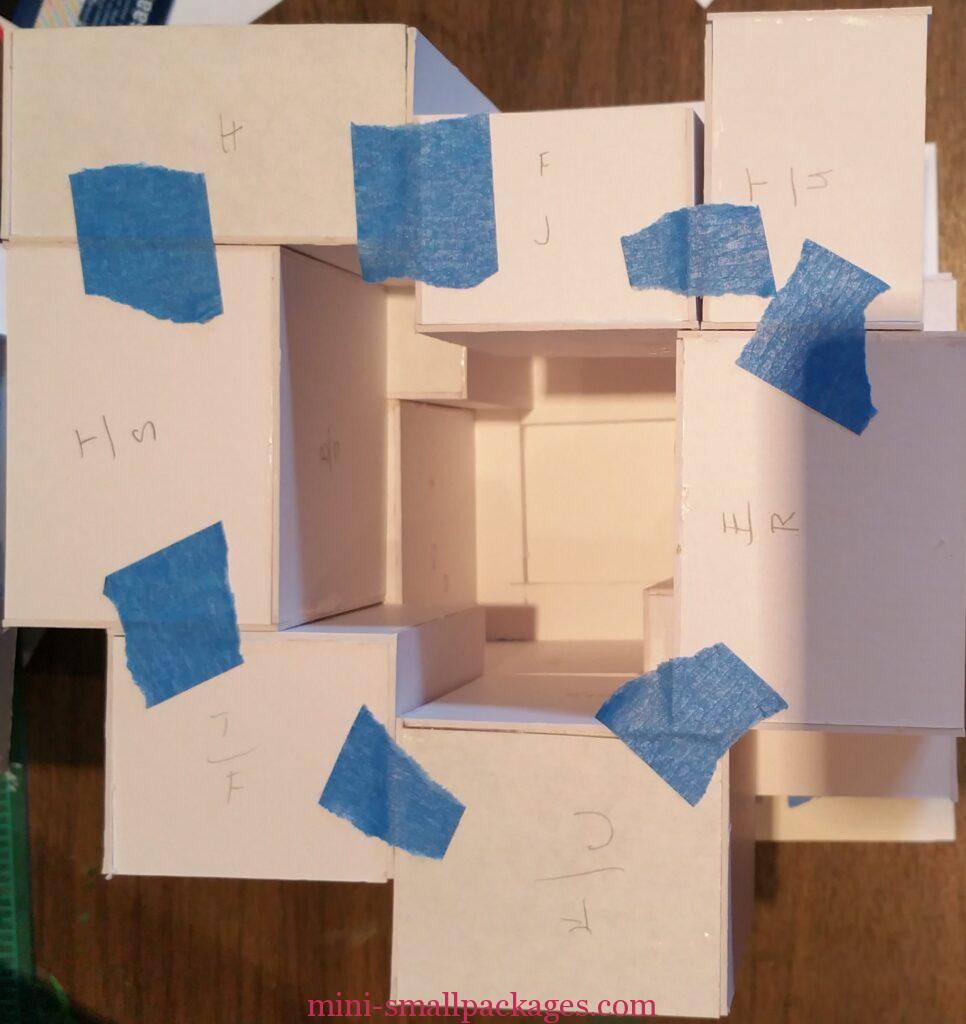I knew from another miniaturist who had done these type of projects before that it was important to have good notes on the way it was laid out. It wasn’t enough to just determine the arrangement – but good drawings or pictures of the arrangement would be needed later when re-assembling after covering with the papers.