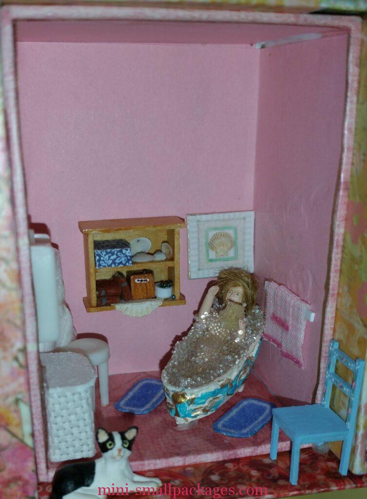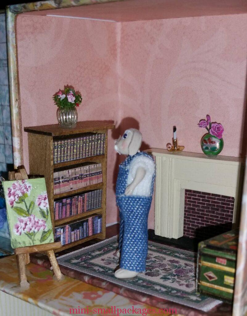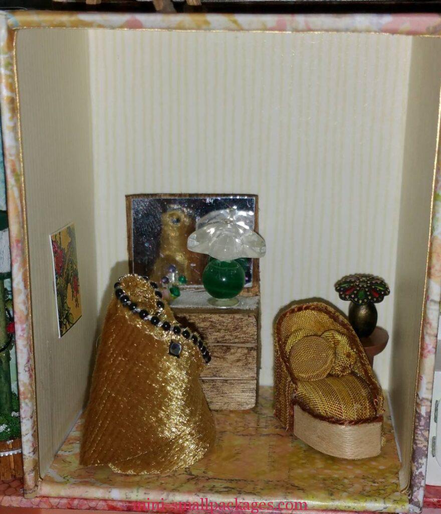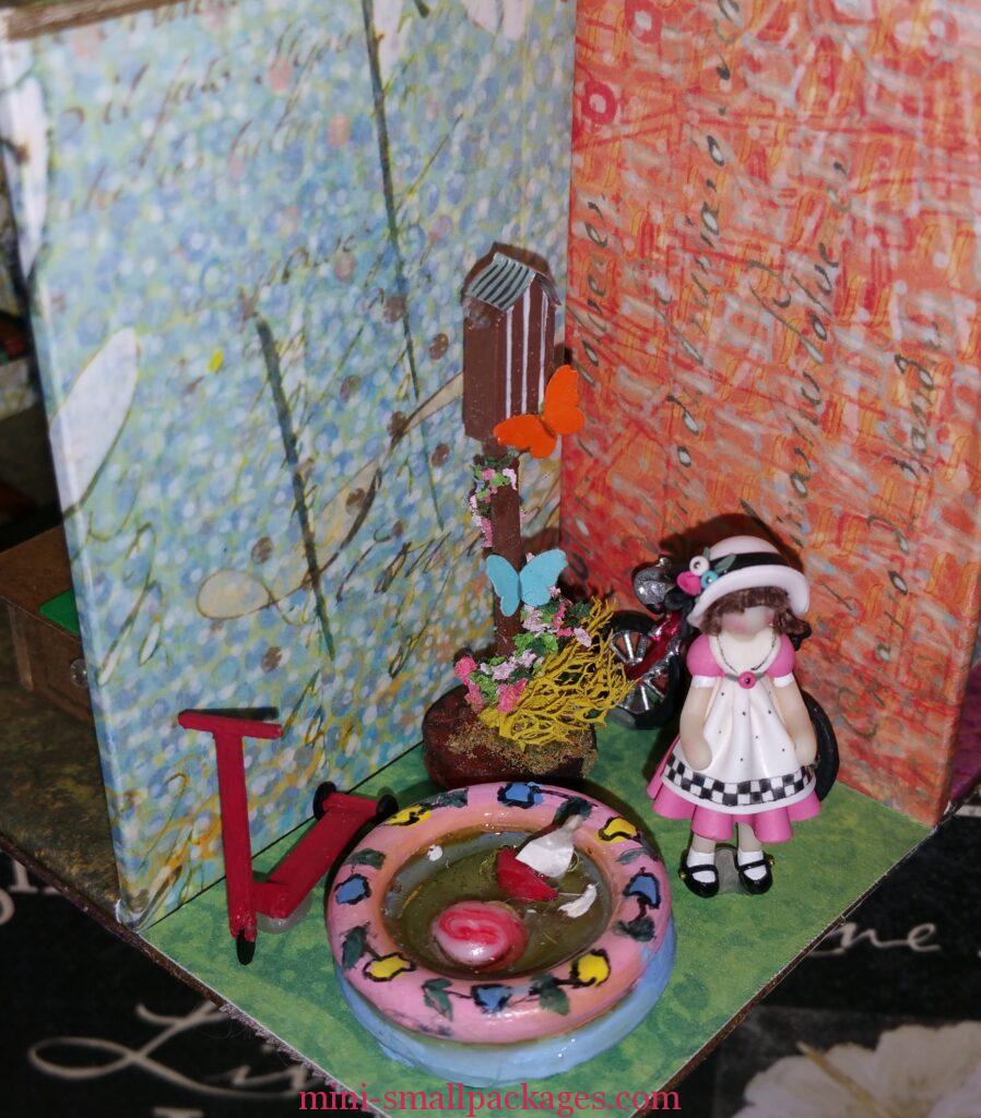 Although technically it will never be done, based on my intentions for this project that it is a temporary home for my treasured, I did finish furnishing it for now. It took longer to decide what goes where and tacking them in place than installing the interior papers. This surprised me as I thought it took me so long doing those papers. Overall, the easiest part was applying Modge Podge to the floors, however I think it would have been beneficial to have added it to the interior walls too. But that is an easy enough fix should I decide to take time to do it. Here are the ‘finished’ sides.