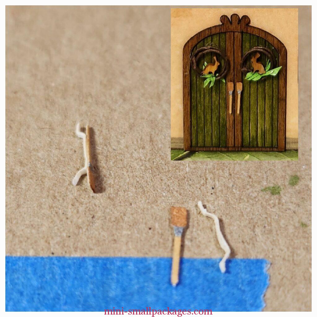 But wait… I forgot the balcony railing and the chain/rope. To do the railing, I pulled out lumber I keep in my stash. Mine is mostly from Midwest Products Scale Lumber. I cut it to length, glue in place and then once glue has dried, I painted to match.