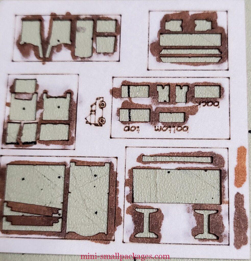 Included in the kit is a sheet of furniture to make. My initial response was “No way”. It took me several evenings to finish the tiny house because how detailed the painting. By the several evenings later, I was like “Why not?” Besides, doing this helps me procrastinate on another project.