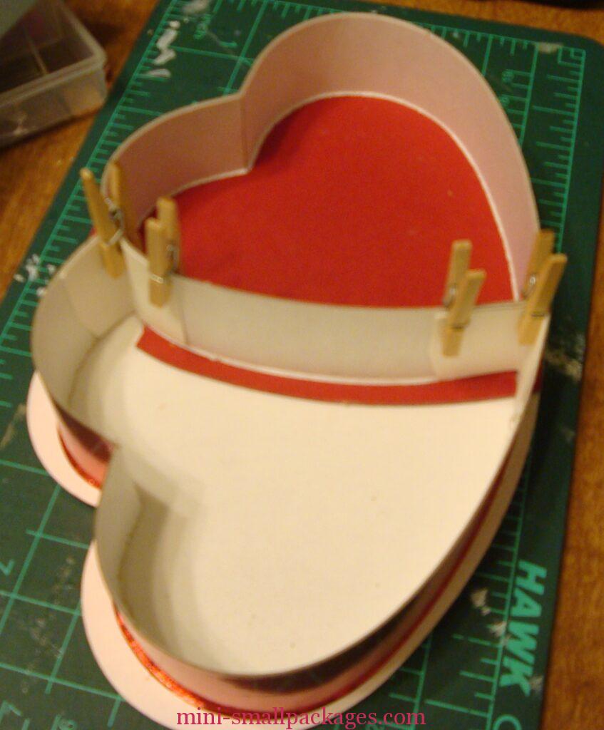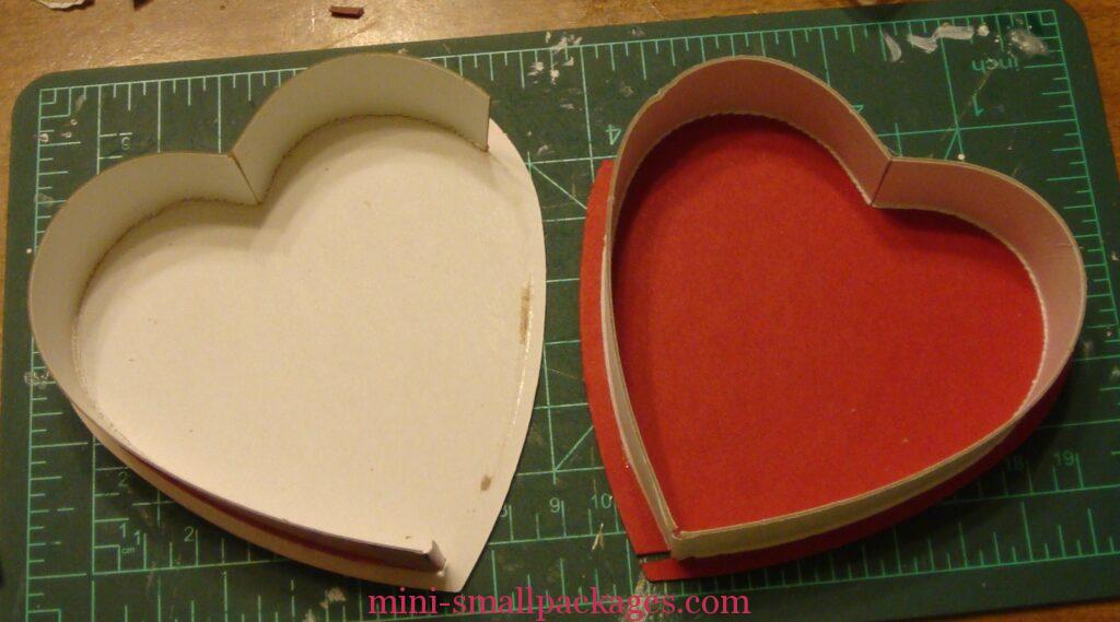 - I traced around the two combined hearts. I glued the floor to the heart base using some cardboard tabs that I glued to the edges of the heart and the underneath of the floor.